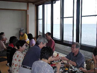 椎名漁港での食事の予定が、台風接近の影響で地引き網の引き揚げが駄目になり、キラメッセでの食事に変更! 若き日の思い閉じ込め断ちきしを 友と出会いてふわり溶けゆく