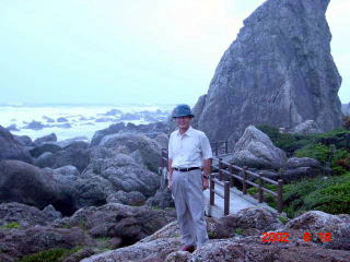 室戸の岩を背景に