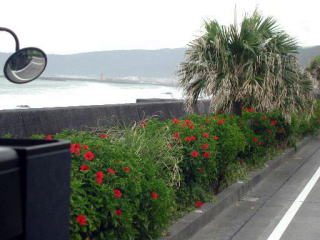 街道のハイビスカスが鮮やか