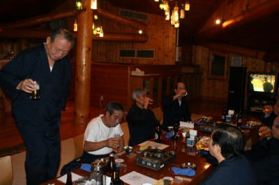 VIP用ロッジ「古賀志山荘」での前夜祭は、麻雀とカラオケで盛り上がりました。