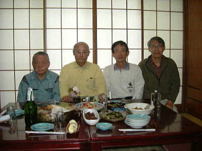 拓南さんの奥様の心尽くしの料理で乾杯! 話はイタドリからインターネットまで尽きることがない。 酒の飲めないosugiも生意気に琉球泡盛の古酒を楽しんでいる。