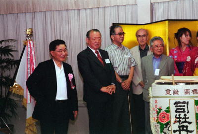 来賓による鏡割り 大橋・北岡両君も来賓として参加