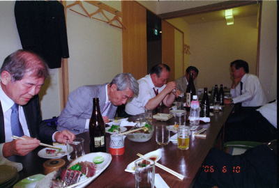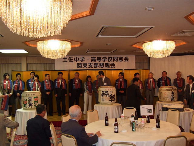 懇親パーティーは「昔を思い出す空間」をテーマに準備が進められました。 「昔を思い出す空間」とは何かということですが、「土佐の料理を食べながら、土佐の酒を大いに飲み、そして郷里のことや昔のことを思い出しつつ、大いに語っていただく場を提供する」ということがその趣旨として合意されました。
