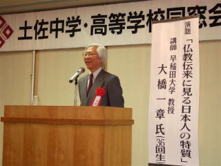 講師紹介では「大橋先生は青島で生まれ,今の四万十市に育ち,小学校では神童と言われていましたが,みんなが土佐中で経験したように入学後は普通の生徒で・・・・・」。 中村君の歯に衣を着せぬ紹介に思わず講師も苦笑いという場面もありました。
