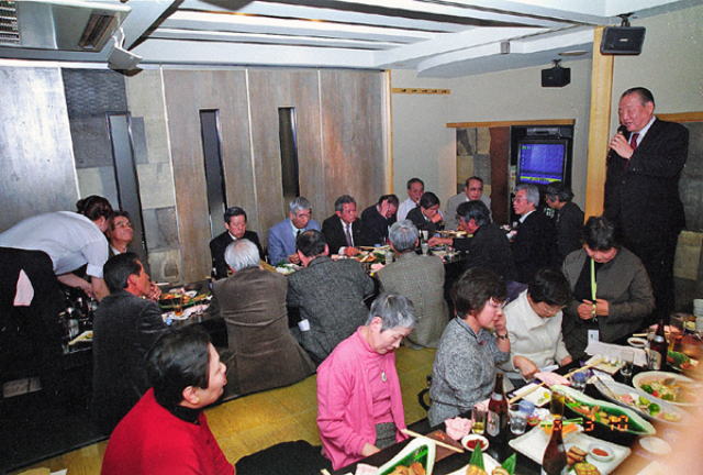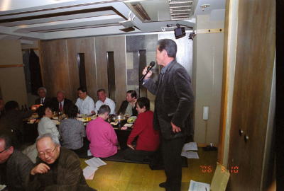 それから、昨年の45周年総会に残念ながら参加できなかった中塚君が、今回は大阪から駆けつけてくれました。 彼も関東三六会の所属会員となっておりますが、何をさておき、彼が来ないと総会が引き締まりません。 今回も周りの人の迷惑を顧みず、彼の音頭で校歌、応援歌を声高らかに歌いました。