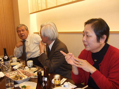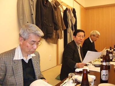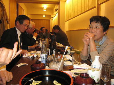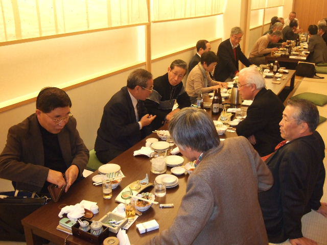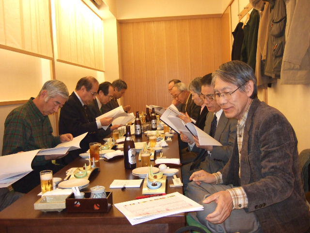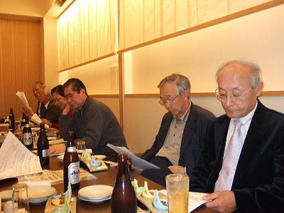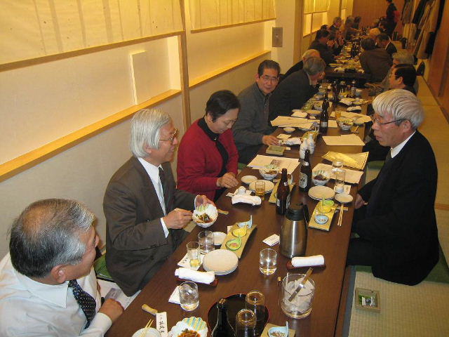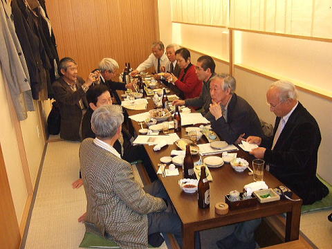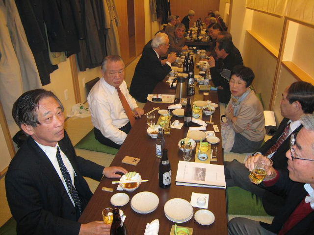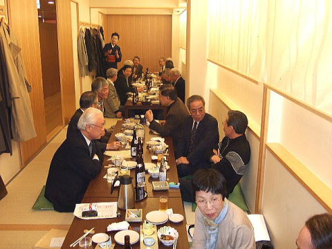 今回は縦長の会場でしたが、酒が入るにしたがい、逐次席を移動し、あちこちに車座のできる楽しい懇親会でした。 きっと昔話に花を咲かせていたことでしょう!