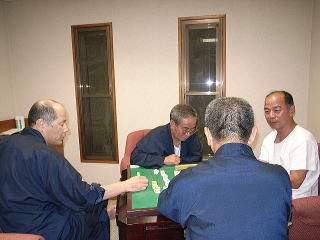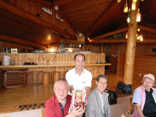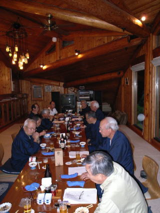 恒例とおりゴルフ場の古賀志山荘で前泊し、宴会、麻雀・カラオケなどで懇親を深め、山本君から前回優勝のカップが返還されました。