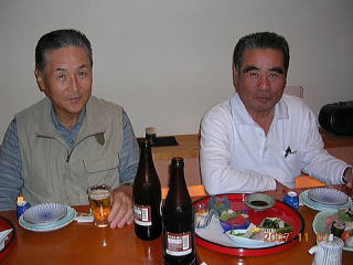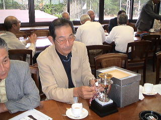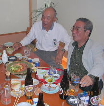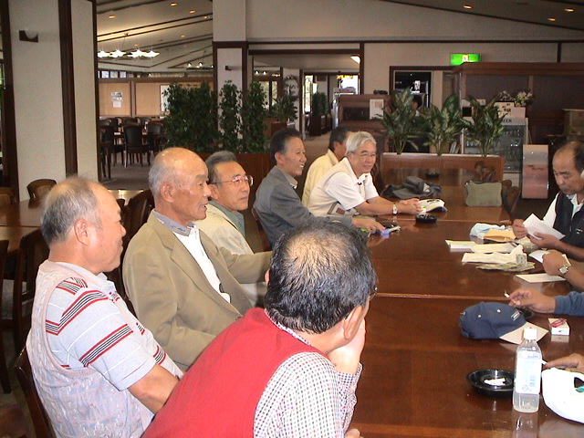 夜は、ゴルフに参加できなかった北岡君などを交えて楽しい懇親会が開かれました。 入院中の高橋重臣君に聞いていただくために全員で校歌と応援歌の合唱をし、録音しました
