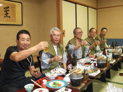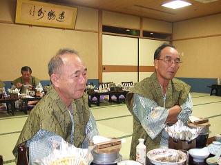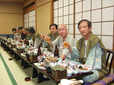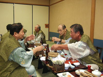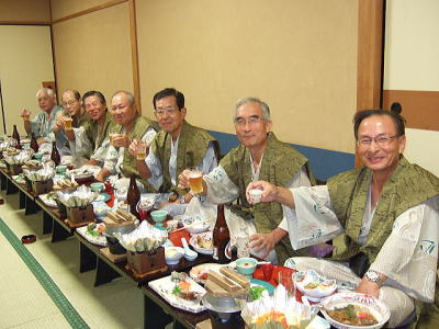 すっかりアットホームな感じになり65歳の修学旅行気分満喫で、枕こそ投げなかったが狭い部屋に5人枕を並べ楽しい一夜を過ごした。 おいしい魚料理もたらふく食べた。 翌日赤福を手土産に名古屋駅で関東組みは分かれたが、赤福がかくも脚光を浴び当ホームページの「談話室」をにぎ合わせることとなるとはこの時誰も思っても見なかった。 赤福談義はその後個人的にも続編があるのでそのうちに、ご紹介します。坂本