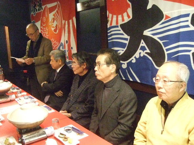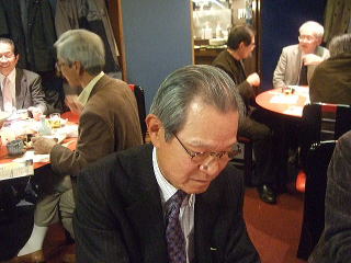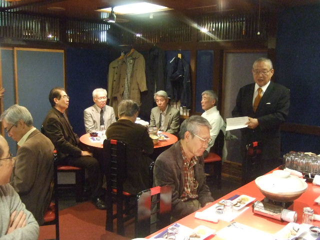 下司君の乾杯で懇親会がスタートしました。 今年も、参加者全員から2分間程度のスピーチがありました。 すでに引退した人、現役を続けている人、それぞれの立場からのスピーチでした。