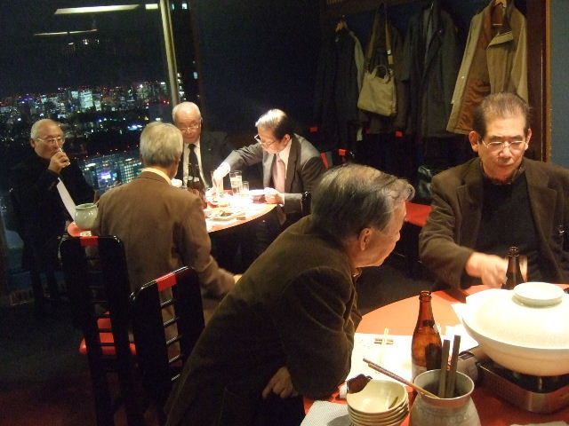 今年の忘年会の会場は、都心を見下ろすスカイレストランでした。 窓際によると足の下に新宿副都心の街路が広がっています。 忘年会は平成22年度の幹事ホームである、Kホームの坂本君の司会で進められました。