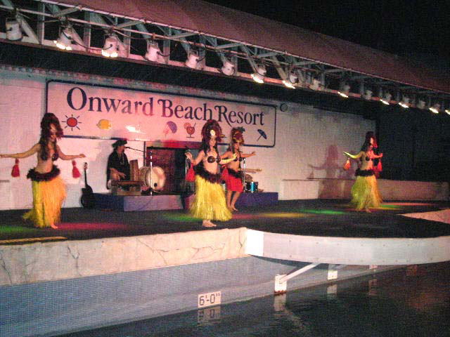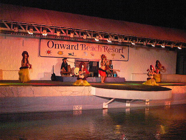 ステージではポリネシアン・ダンスのショーがあり、廣内、山中両君が選ばれて、美人ダンサーと一緒にフラダンス(?)を演じ、喝采を浴びました。