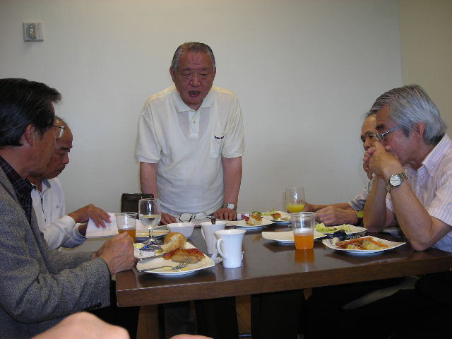 中村さんの司会で、廣内さんの歓迎の辞に始まり、竹内会長の挨拶のあと懇親パーティとなりました。