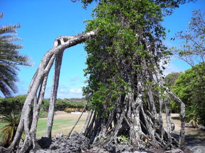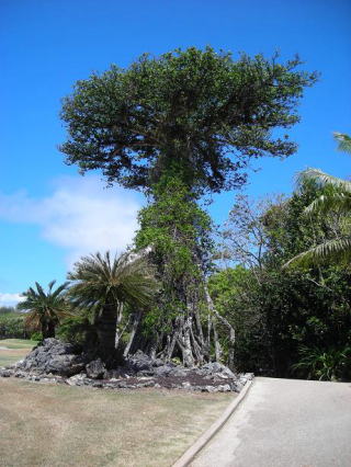 タオタオモナ(神木)は「アバター」の命の木のモデルのような木でした。 ゴルフ場のレストランで食べたヤシの実の刺身(わさび醤油で)は絶品で忘れられません。 紫外線が強いので皆さんサングラスをしています。荒野の悪人どもといった風情です。