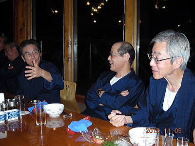高知から昭三さん、関西から中塚さんが、また久しぶりに坂本、山下両君が参加されて盛大に懇親会が開かれました。 昭三さんからは、来年の50周年記念同窓会の大まかな計画が報告されました。