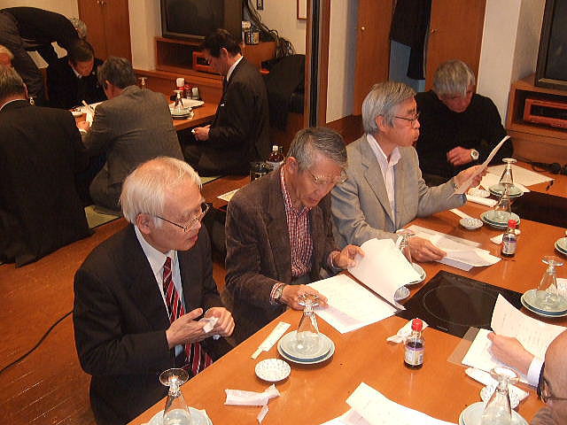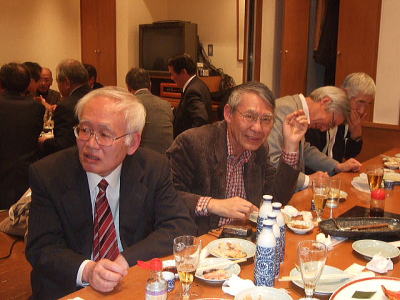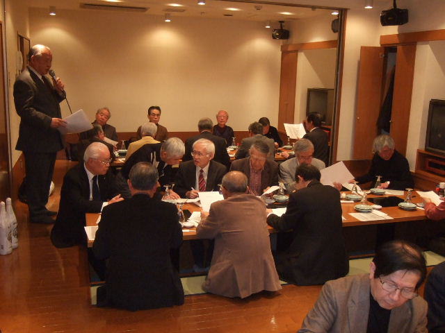 以上で総会を無事終了し、廣内君の乾杯の音頭で懇親会がスタートしました。 今回の会場は掘り炬燵方式でしたが、懇親会が始まると席を移動しながら、あちこちで昔話に花が咲いていたようです。 平成23年度総会その2へ