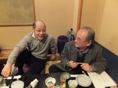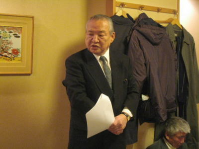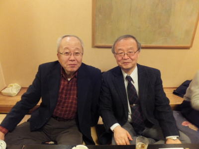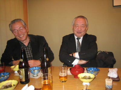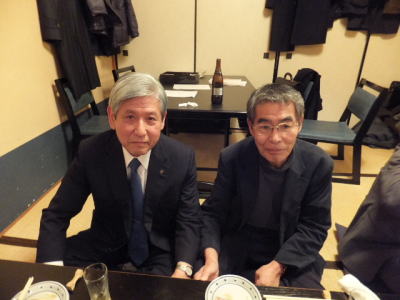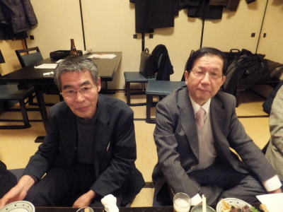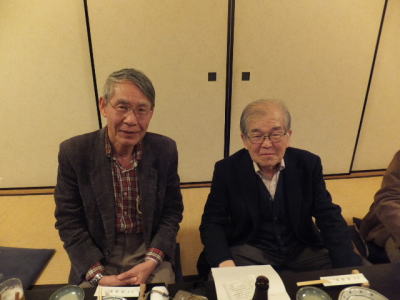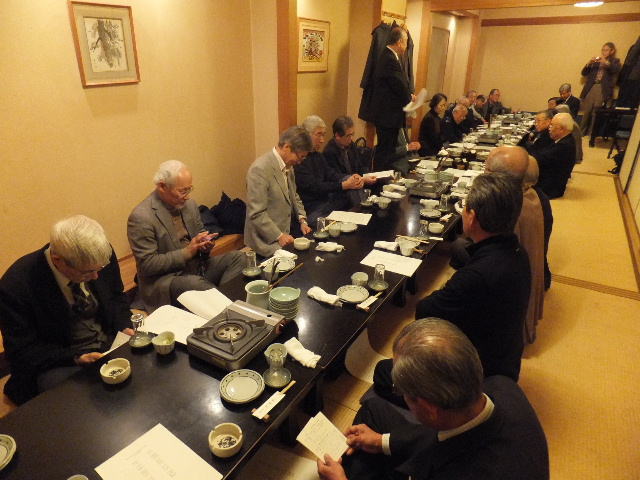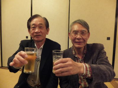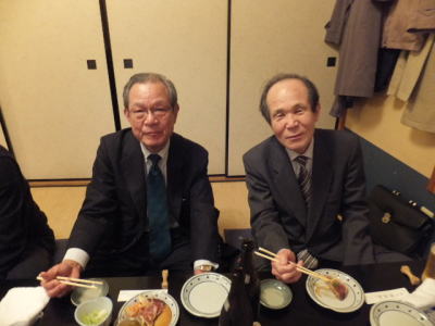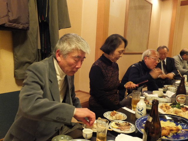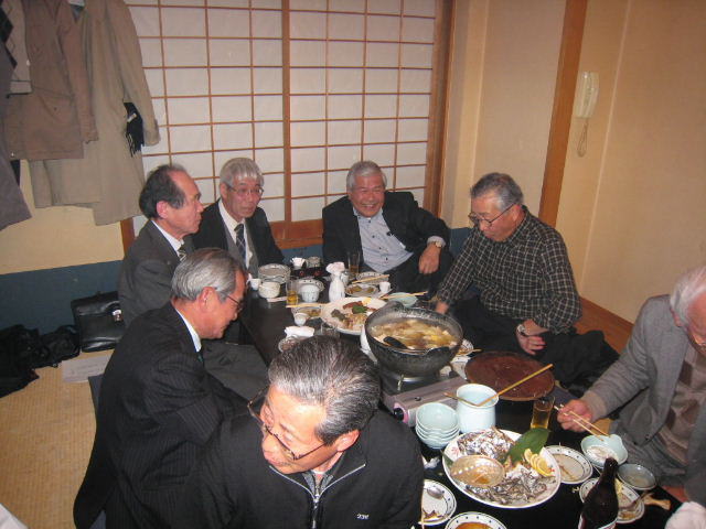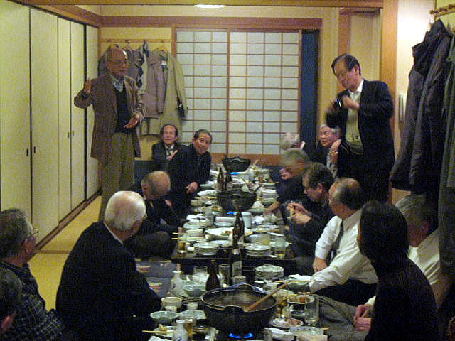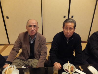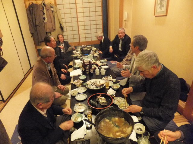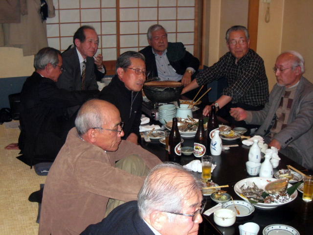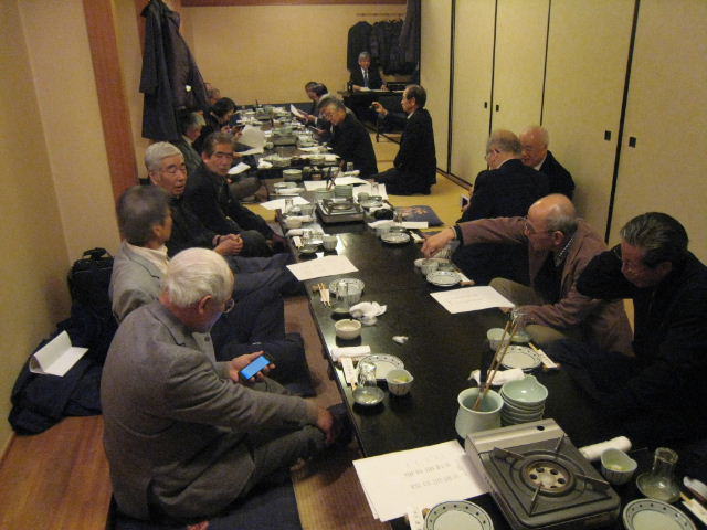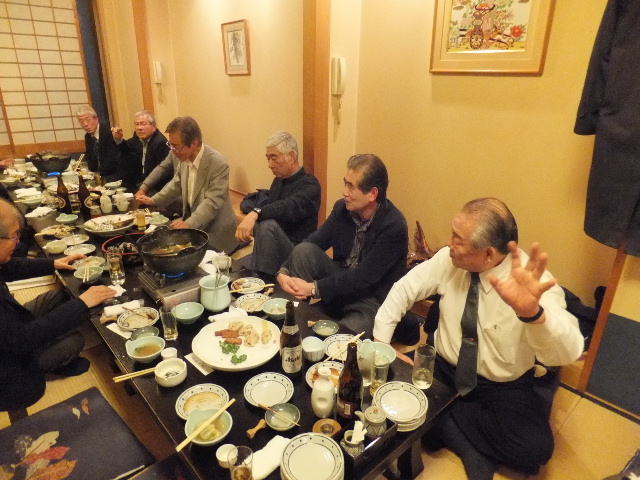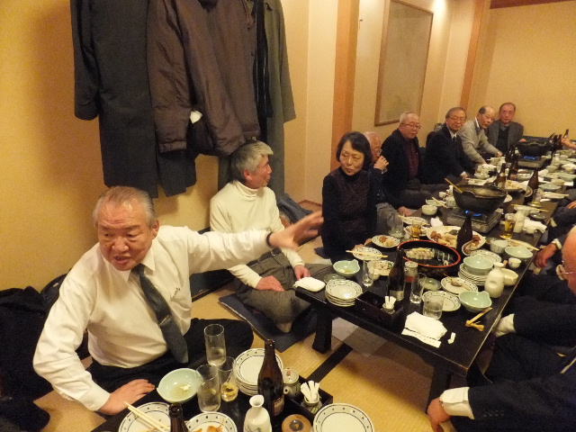 以上で総会を無事終了し、紅一点参加の後藤さんの乾杯の音頭で懇親会がスタートしました。 後藤さんは8キロダイエットされたそうで、スマートになっておられました。 今回の会場は座敷方式でしたが、懇親会が始まると席を移動しながら、あちこちで昔話に花が咲いていたようです。