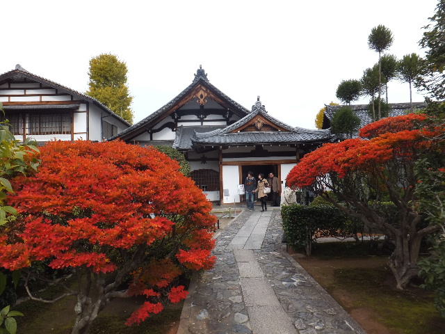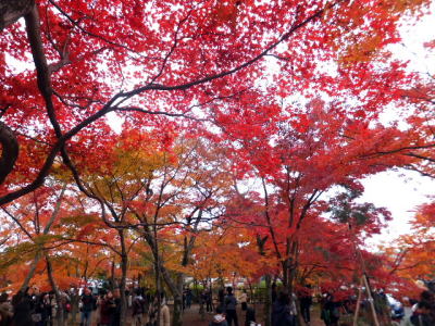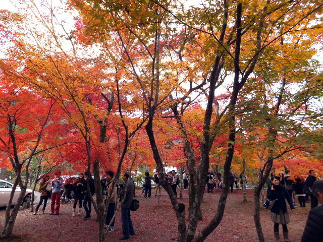 最初のポイントは、紅葉の時期の京都の道路は大渋滞となるため、バスやタクシーの利用は避け、JR、私鉄、地下鉄を利用するほかは、健脚を信頼してひたすら歩く! 2番目のポイントは、京都の寺院の紅葉巡りには、拝観料が馬鹿にならないので、できるだけ寺院の外から紅葉を楽しむ。 の2点です(笑)