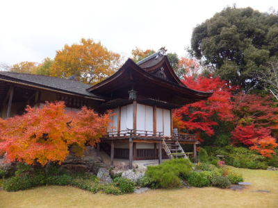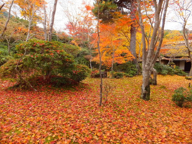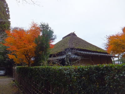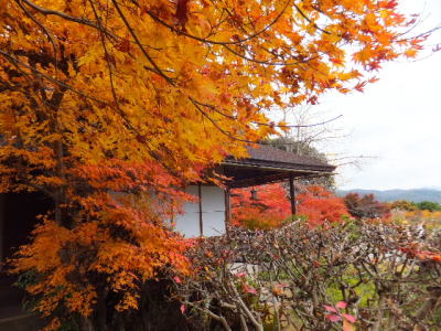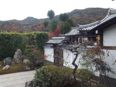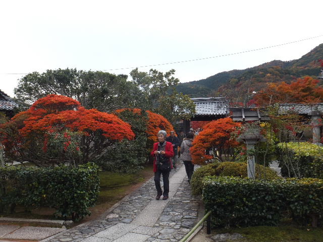 「大河内山荘」から左手に進むと、竹林の道から紅葉を眺めながら歩くことのできる道となります。 「常寂光寺」の紅葉を入口から眺めた後「落柿舎」に向かいました。 「落柿舎」は、元禄の俳人で、松尾芭蕉の弟子であった向井去来の別荘として使用されていた草庵です。