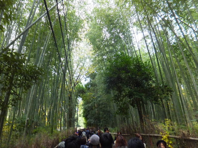嵯峨野の竹林の中で最も有名なのが、野宮神社から大河内山荘へと至る道です。 真っ直ぐに伸びた道の両側に見事な竹林が続いています。 自然に溶け込む心地よさを味わうことができる遊歩道ですが、残念ながら多くの観光客で溢れており、ゆっくり風情を味わうことはできませんでした。