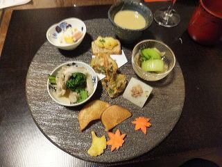 「そば茶寮」は蕎麦創作料理のお店です。 季節の旬の野菜を生かした、和洋折衷の料理を、美しい器とともに楽しむことができます。 クラス会最後の夜を思う存分楽しむことができました。 川上君に感謝! 感謝です! Kホームのマドンナ達は残念でした。