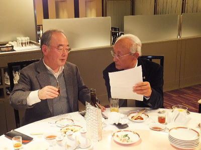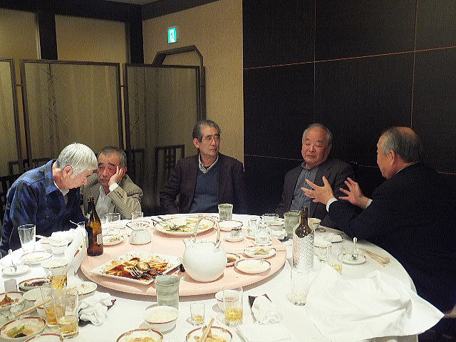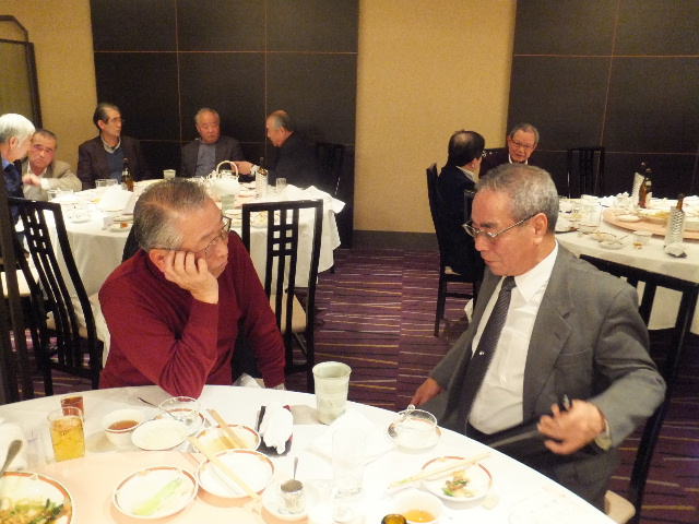 Tホーム横田君の乾杯の音頭で懇親会がスタートしました。 今年は中華料理ということでテーブル席でしたが、懇親会が進むにつれて適宜席を移動して、あちこちで懇談の輪が形成されていました。