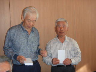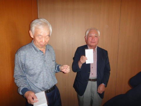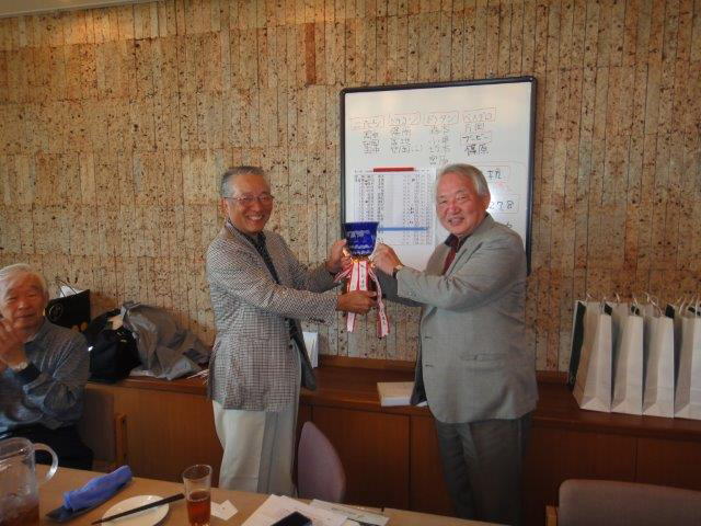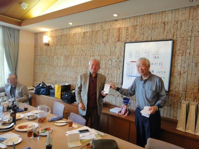 はじめてのお手合わせも多かった為、ペリアー方式で順位を競い優勝は勝負強い関東の森光泰夫君となりました。 今回は優勝とブービーのグロススコア−が同じという接戦でしたが、籤運に強いラッキーボーイが優勝という結果になりました。
