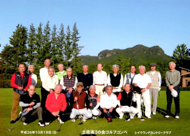 関東三六会としては今回第34回のゴルフ大会でしたが、東京での甲午総会に続いて高知からも9名と多数の参加得られることになりましたので、「土佐高36会甲午総会記念ゴルフ大会」として開催しました。 甲午総会に続いて10月18日の前夜祭、19日のコンペの両日とも絶好の好天に恵まれ、今回も廣内君のご好意で恒例のレイクランド カントリークラブ及び古賀志山荘にて前夜祭及びコンペを開催することが出来ました。