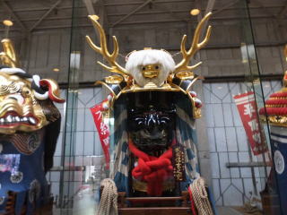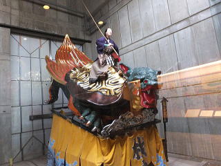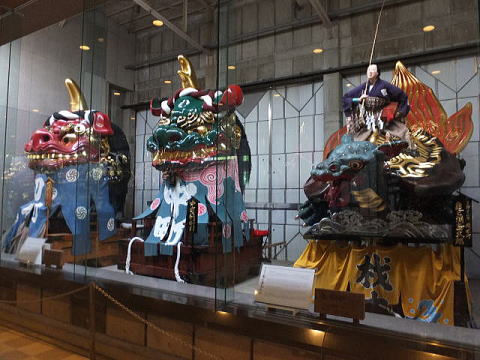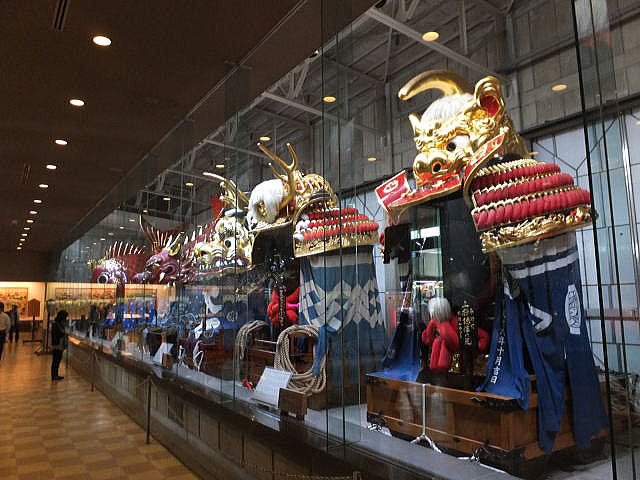 次に、曳山展示場を見に行きました。 城下町としての唐津の町は、慶長の頃(西暦1600年頃)寺沢志摩守広高が唐津城を築いた時に始まりますが、唐津っ子の産土神である唐津神社の秋祭は、築城前の古くから行われていました。
