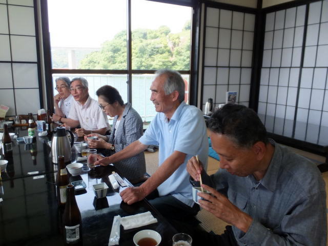 上の階は、玄海灘を借景にした風光明媚なお座敷になっています。 50畳の大広間をはじめとして、宴会などに利用できる多くのスペースが準備されているとのことです。 今回は、上の席で玄界灘の光景を眺めながらの昼食となりました。
