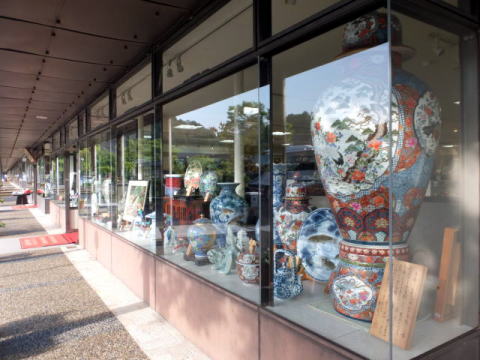 次に、「有田陶磁の里プラザ」を訪ねました。 「有田陶磁の里プラザ」では200m余りの中央道路をはさんで、25の有田焼の店舗が軒を連ね、日用食器、贈答品、営業用食器、高級美術陶磁器などの陶磁器が販売されています。 眺めるだけでも素晴らしい陶磁の里プラザです。 ギャラリーやレストラン、休憩所も完備しています。