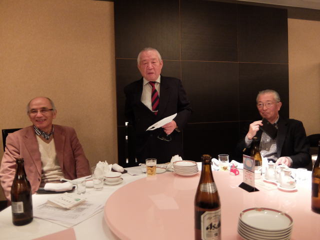 関東三六会副会長の下司君の乾杯の音頭で懇親会がスタートしました。 今年は中華料理ということでテーブル席でしたが、懇親会が進むにつれて適宜席を移動して、あちこちで懇談の輪が形成されていました。