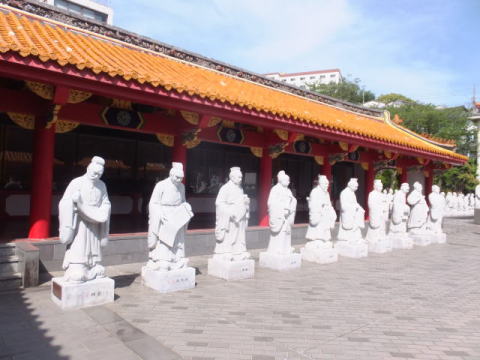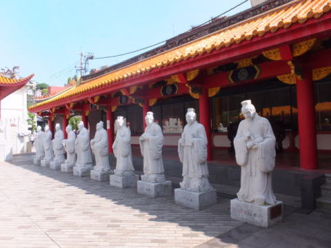 各門は正確に東西南北を示す方角に位置しています。これは、古代中国の地相占い風水に基づくものです。銅座川に面する北の玄武門は水を呼び込むとされ、湊公園へと開かれた南の朱雀門は火を呼び込むとされています。そして鬼門の北東には、華僑の菩堤寺である崇福寺があり、邪気を封じています。