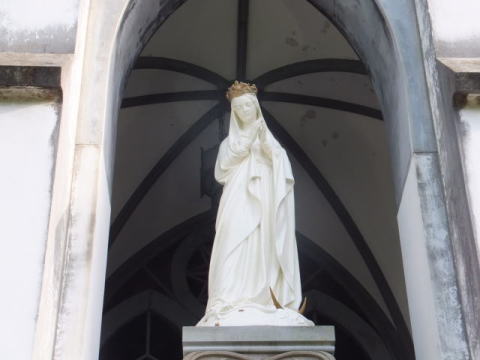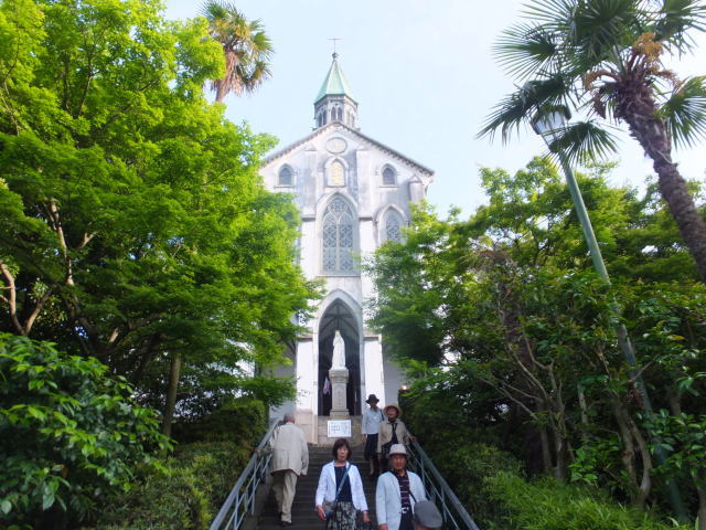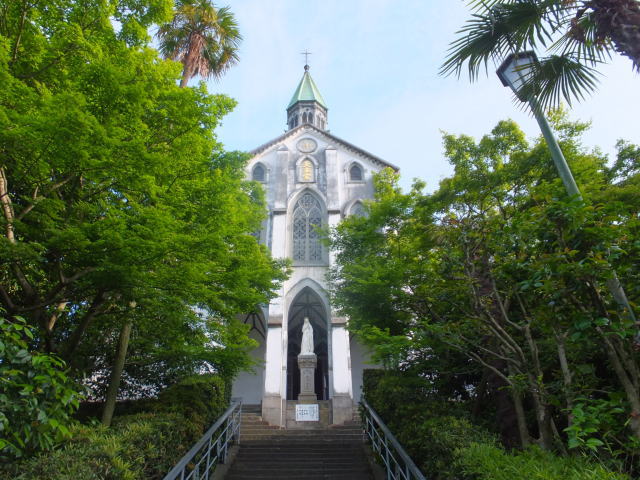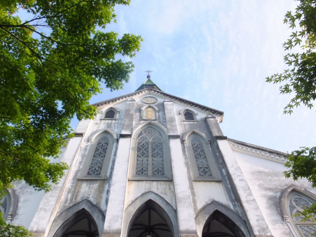 グラバー園から坂道を下っていく途中に、大浦天主堂があります。 大浦天主堂は、西坂の丘で殉教した26聖人に捧げるため、フランス人プチジャン神父によって建てられた教会で、正式名称は「日本二十六聖人殉教聖堂」です。 元治2年(1865年)に建立された、日本最古の木造ゴシック様式の教会で国宝に指定されています。
