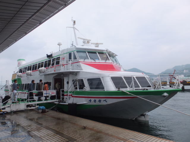 第2日目、朝食もそこそこにワシントンホテルを7時20分発で、長崎港に向かい、長崎後発7時40分、福江港着9時5分のジェットホール「べがさす」に乗船しました。