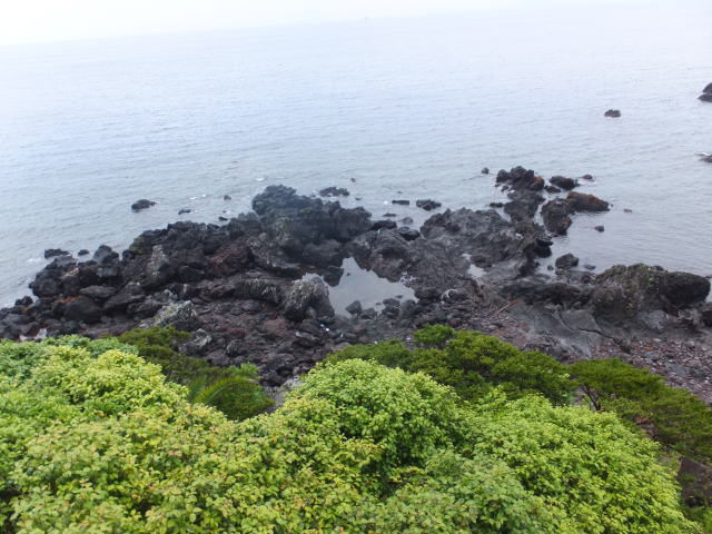 「鬼山」の次に「鐙瀬熔岩海岸」を訪ねました。 鬼岳火山から流出した溶岩が、青く澄み切った海に延々7kmにわたって流れ込み、変化に富んだ海岸線を形づくっています。 温暖な無霜地地帯で、至る所に亜熱帯植物が繁茂し、情熱的な花木が咲き乱れ、美しい景観を呈しています。