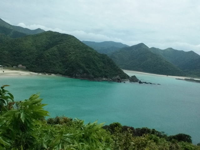 魚藍観音展望台の眼下に高浜海水浴場を見ることができます。 高浜海水浴場は、日本一美しいといわれる砂浜を持つ全国的にも有名な海水浴場です。 輝くほどの砂浜を取り囲むように連なる山々の緑、波打ち際から水色、青色、藍色となって東シナ海に広がる様は「美しい」の一言です。 周囲に人工的な建物がないのも魅力で、浜の背後にはハマユウやサキシマフヨウの自生群があります。
