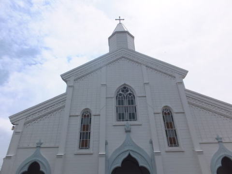 教会裏には、悲しい五島キリシタン弾圧の牢跡・26聖人のうちの一人である聖ヨハネ五島の像もあり、厳しく迫害された歴史を物語っています。 アンゼラスの鐘の音が悲しくそして優しく響きます。