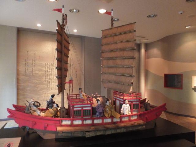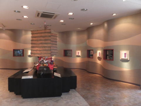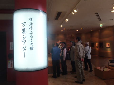 万葉シアターでは、三井楽町に関わりの深い「遣唐使」と「万葉」をテーマに、史実を参考にして創作した三井楽オリジナルの映像ソフト「遣唐使ものがたり」と「行きし荒雄ら」を楽しむことができます。 いずれも万葉時代の頃の三井楽を舞台にした物語です。 リズミカルに動く人形アニメーションと万葉幻想に誘う万葉切り絵々巻で、古代の三井楽を楽しむことができるようですが、時間の関係で見ることができませんでした。