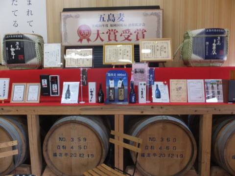 道の駅遣唐使ふるさと館に隣接して「五島列島酒造」があります。 豊かな大地と青い海、人情が温かい島「五島」の島の恵みで焼酎を造る・・・・・ それは、安心・安全で美味しい五島の魅力を瓶に封じ込めること。 ということで、輸入原料はもちろん、島以外からの原材料を一切使わない。 島で昔から大切に育てられている農産物と、島の水と、島の人の手で造る焼酎であることが五島列島酒造の原点であり誇りでもあるとのことでした。