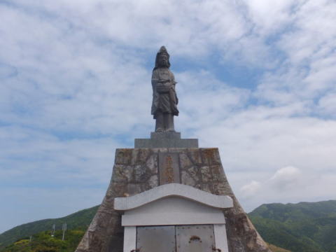 五島列島酒造の次に「魚藍観音展望台」を訪ねました。 魚藍観音は、東シナ海での大漁・海の安全を祈って、建てられました。 高台から眼下に広がる海を穏やかに見守っています。 鯛を抱える観音様の姿は微笑ましいものがあります。