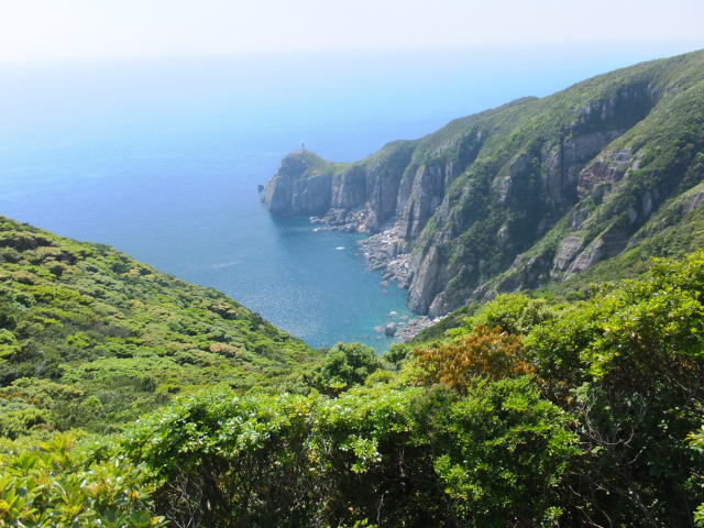 「井持浦教会」の次に「大瀬崎灯台」を訪ねました。 大瀬崎灯台は、「九州本土で最後に夕陽が沈むところ」として、九州本土最西端に位置し、東シナ海の荒海に面しています。 激しい風や波に打ちひしがれて浸食された断崖絶壁が作り出す壮大な風景は圧巻です。 海に突き出た場所に立つ白い灯台は青い海とのコントラストが美しく、近海を航行する船の道しるべとなっています。