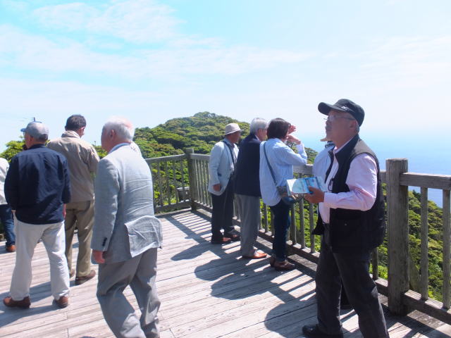 予定通り9時過ぎに福江港に到着、マイクロバスに乗り換えて早速島内見学に出かけました。 最初に「武家屋敷通り」を訪ねましたが、ここはマイクロバスの中から眺めたのみで、五島のシンバルともいえる「鬼山」に向かいました。