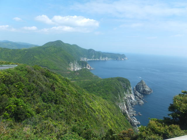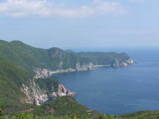 魚津ヶ崎は猛烈に風の強い場所で、公園内の樹は斜めに枝が伸びていました。 魚津ヶ崎によって風が遮られる南側は、天然の良港となっており、遣唐使の最後の寄宿の場所として選定された理由が良く理解できました。