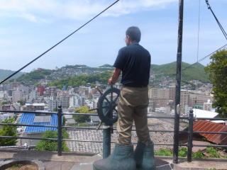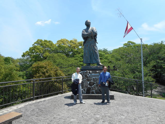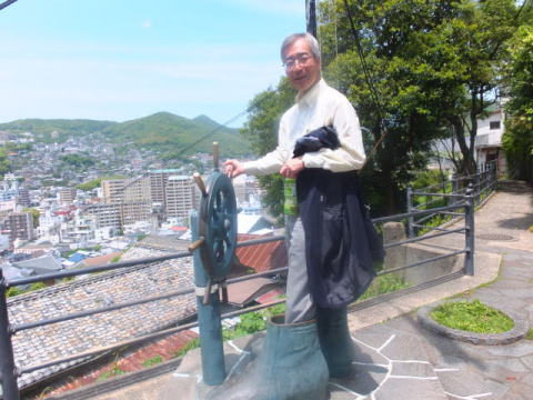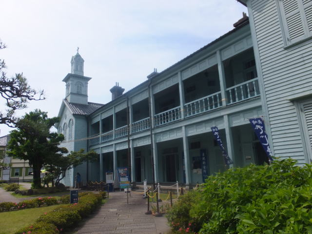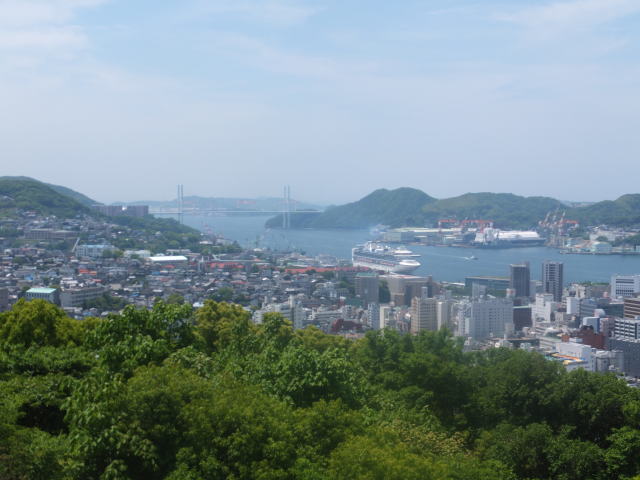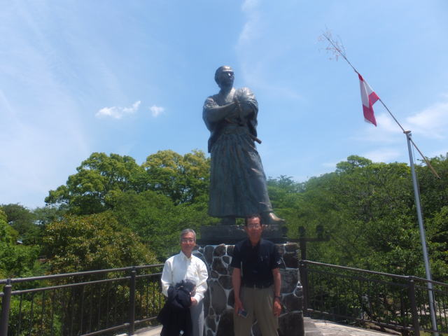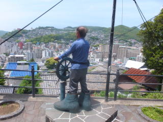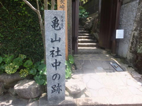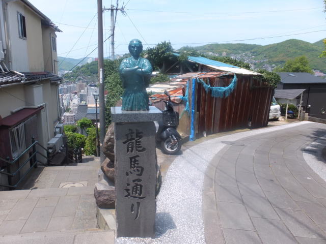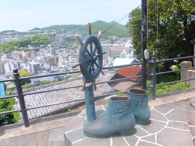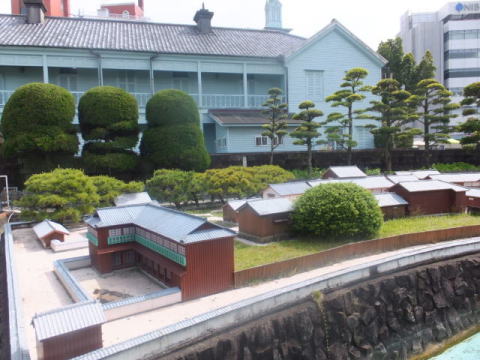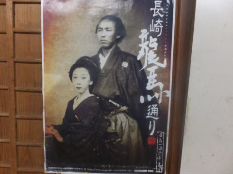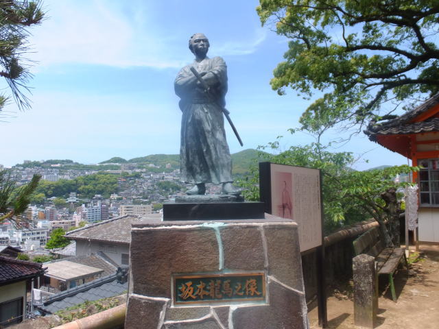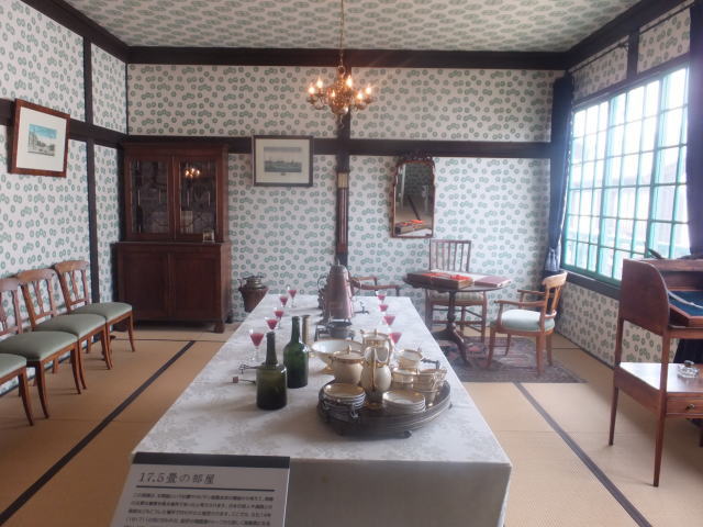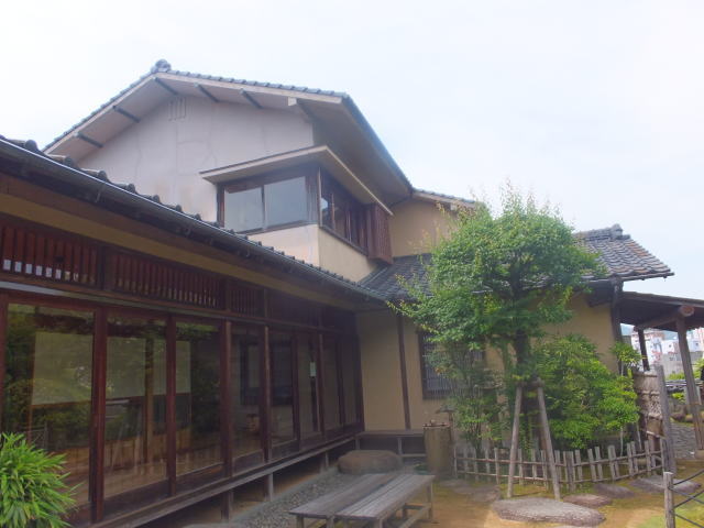 龍馬がもたれかかって座ったと伝えられる10畳座敷の柱など黒褐色の建具は幕末の家屋の雰囲気を忠実に再現しています。その先の縁側からは長崎の街と港が一望できます。