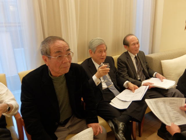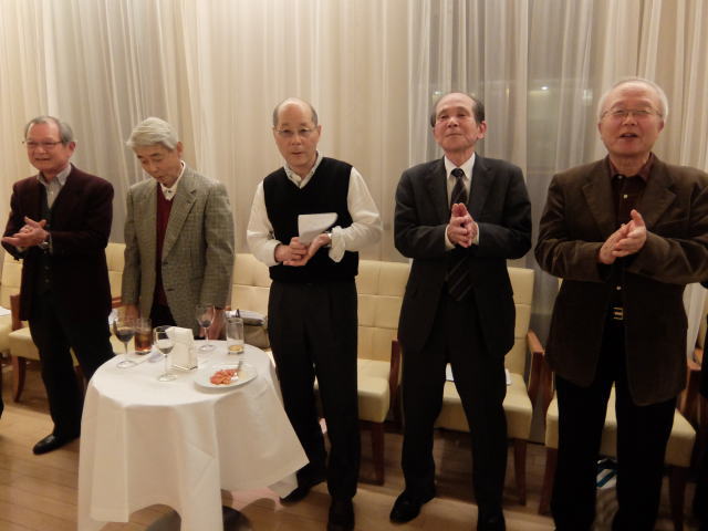 平成27年12月21日に「ホテル グランドパレス」において忘年会を開催し、14名の参加が得られた。 幹事をKホームの宇田君、坂本君が務めた。