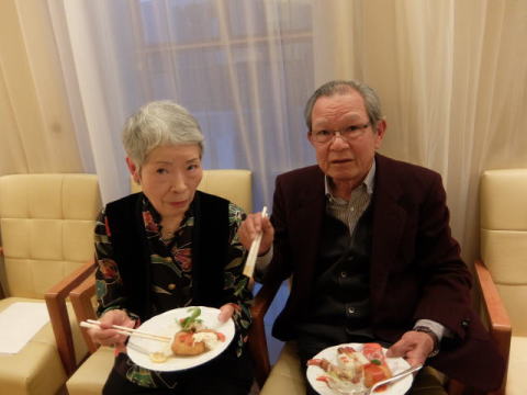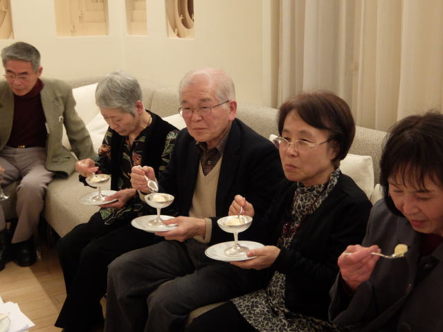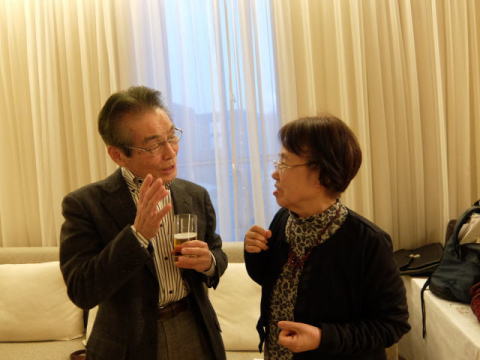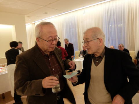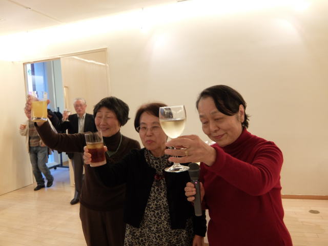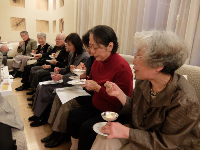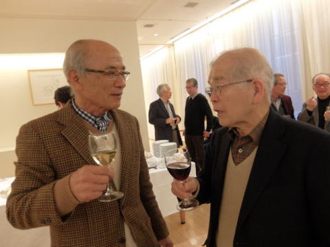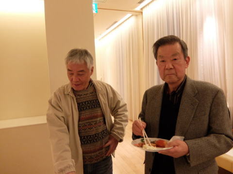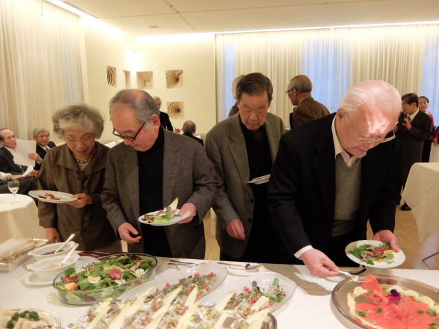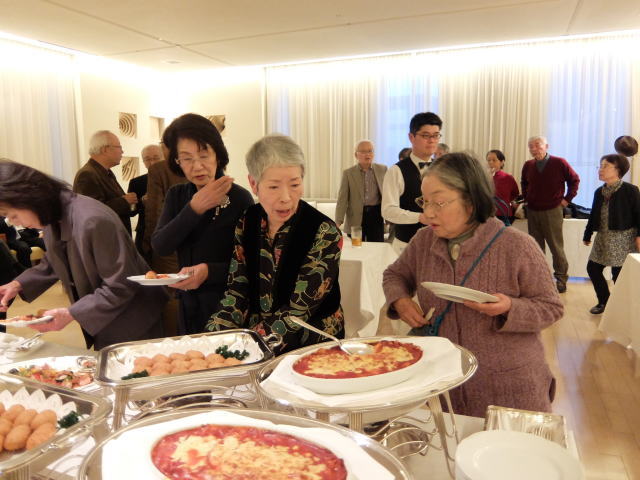 以上で総会を無事終了し、Sホームの女性陣の音頭で、懇親会がスタートしました。 今回は立食方式でしたので、懇親会が始まるとあちこちに会話の輪ができて、昔話に花が咲いていたようです。