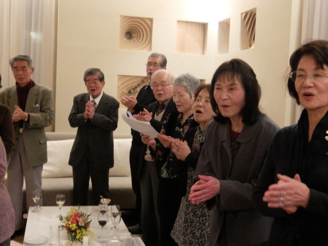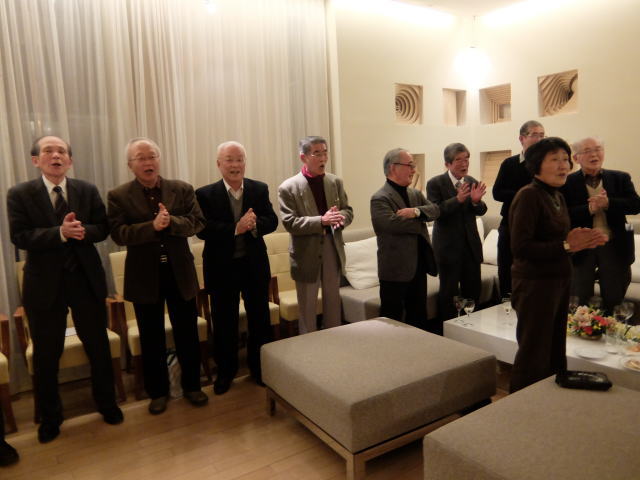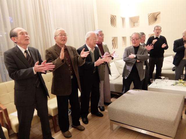 懇親会の最後は恒例の校歌&応援歌の斉唱です。 今年も遠路参加してくれた中塚君の音頭で行われました。 来年また元気で再会しましょう!