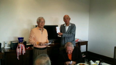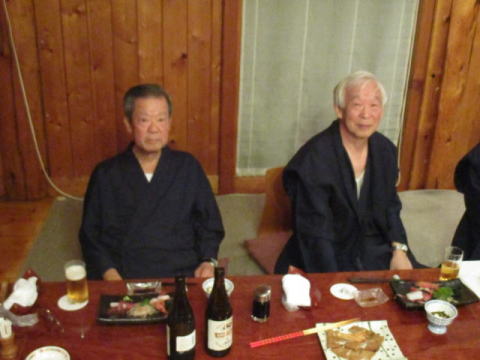 高知から亀井、片岡、安岡(健)の3君と関西から添田君が遠路上京し、関東からは初参加の矢野君を加え、前夜祭では飲み食い、カラオケと和やかに懇親を深めた。