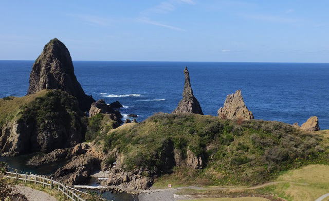港近くの海鮮料理「漁場」で昼食後、2台のワゴン車で観光出発。